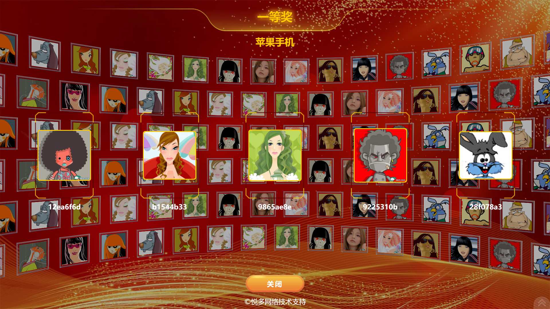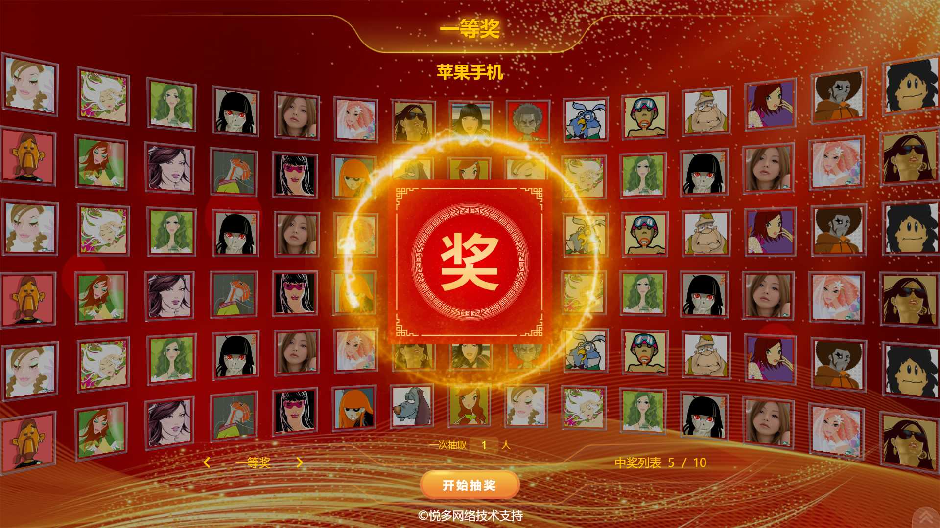 2、所有奖项数据包括奖项名称、奖品名称、奖品数量、奖品图片、一次性抽几个人等数据都可以后台自定义设置。