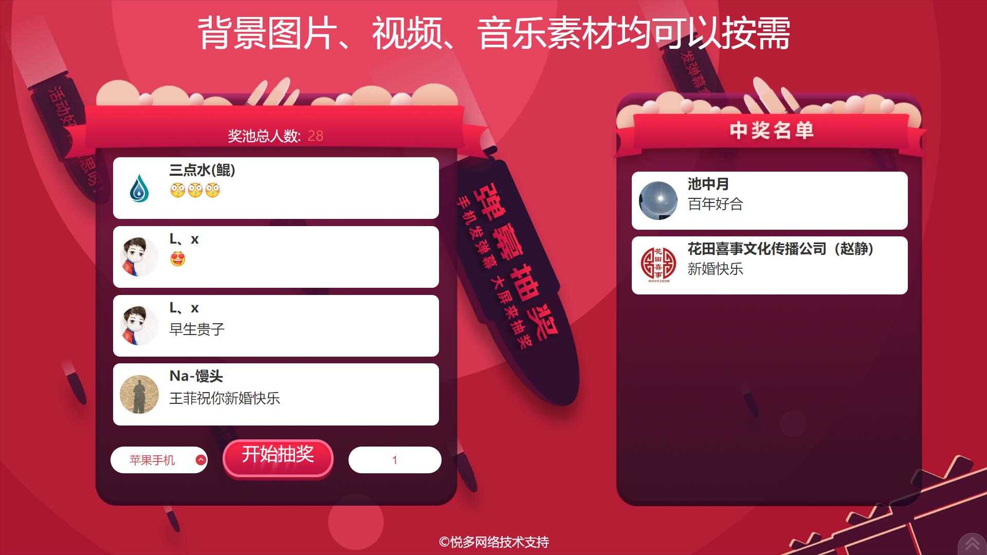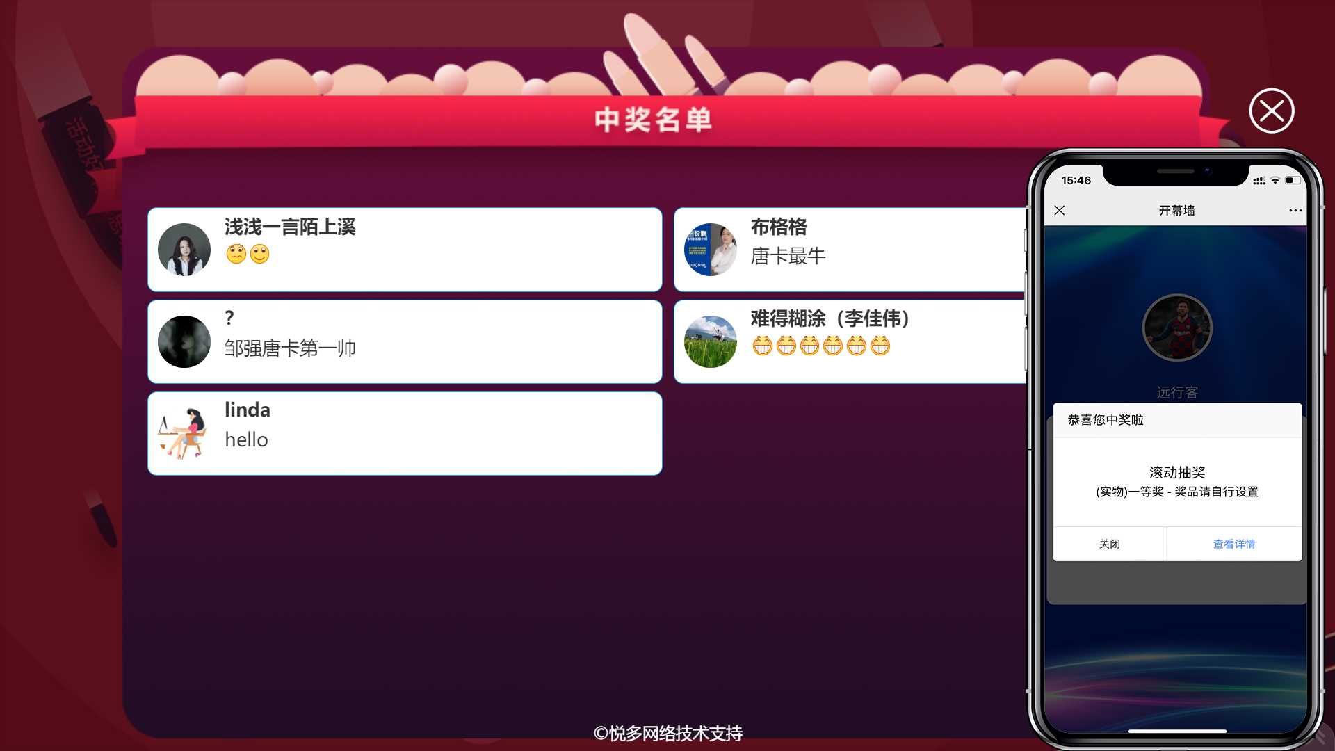 3、需要搭配上墙一起使用,用户必须要先发送文字内容上墙后才可以参与抽奖。