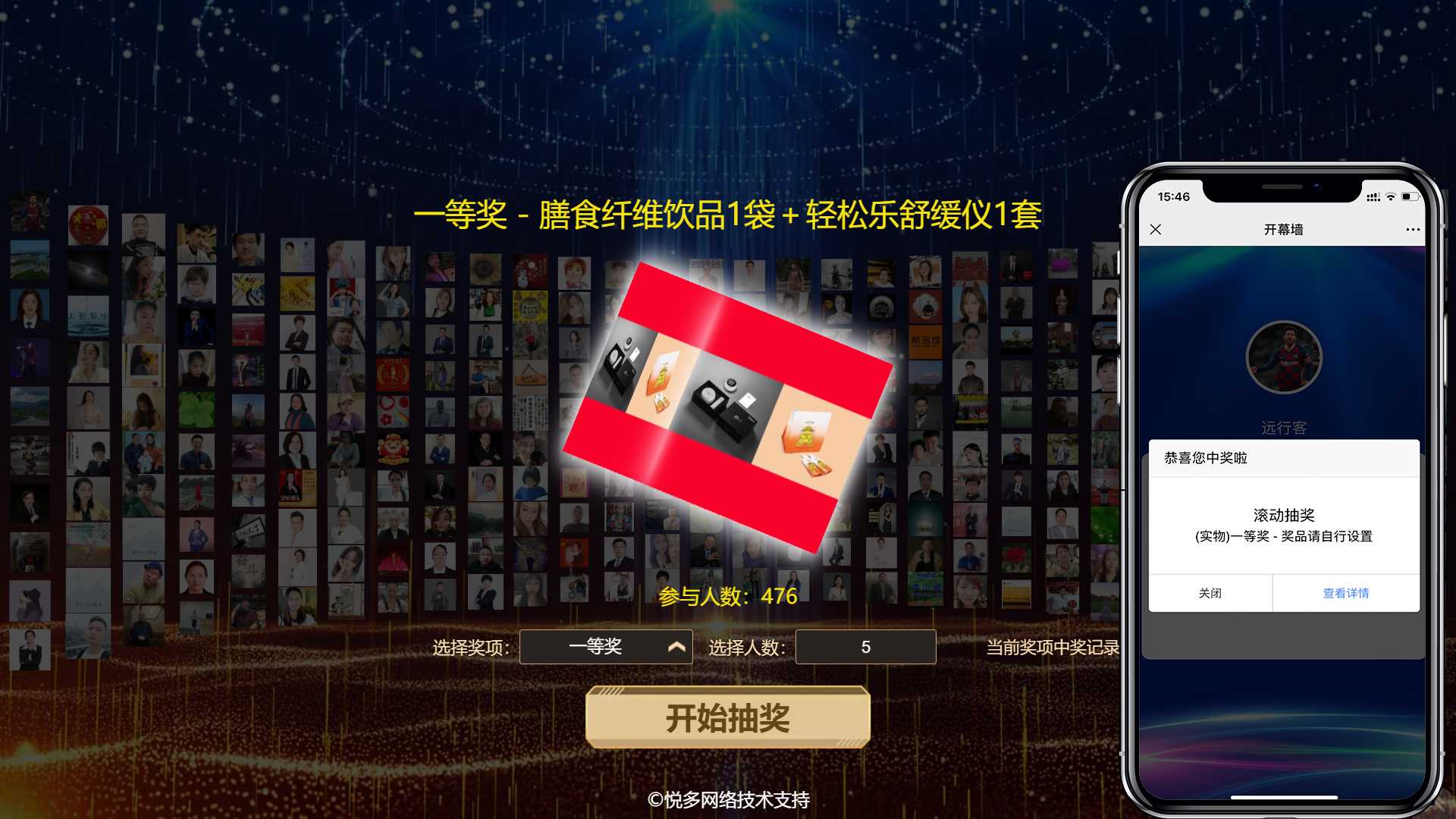 7、一次抽几个人、奖项信息都可以自定义。