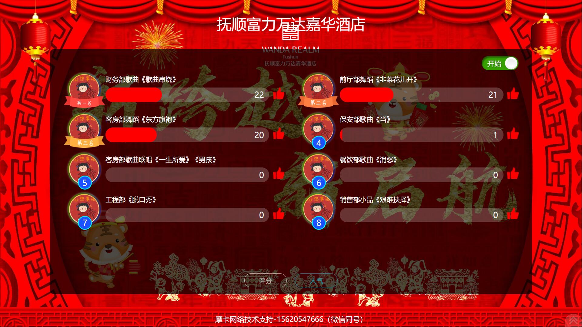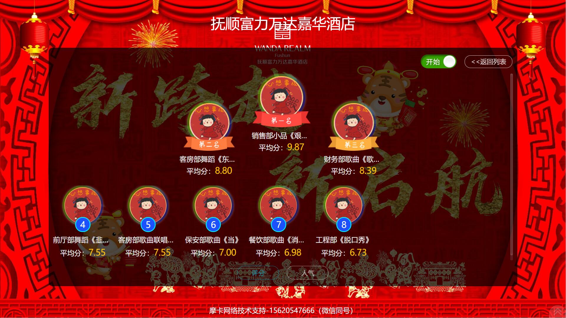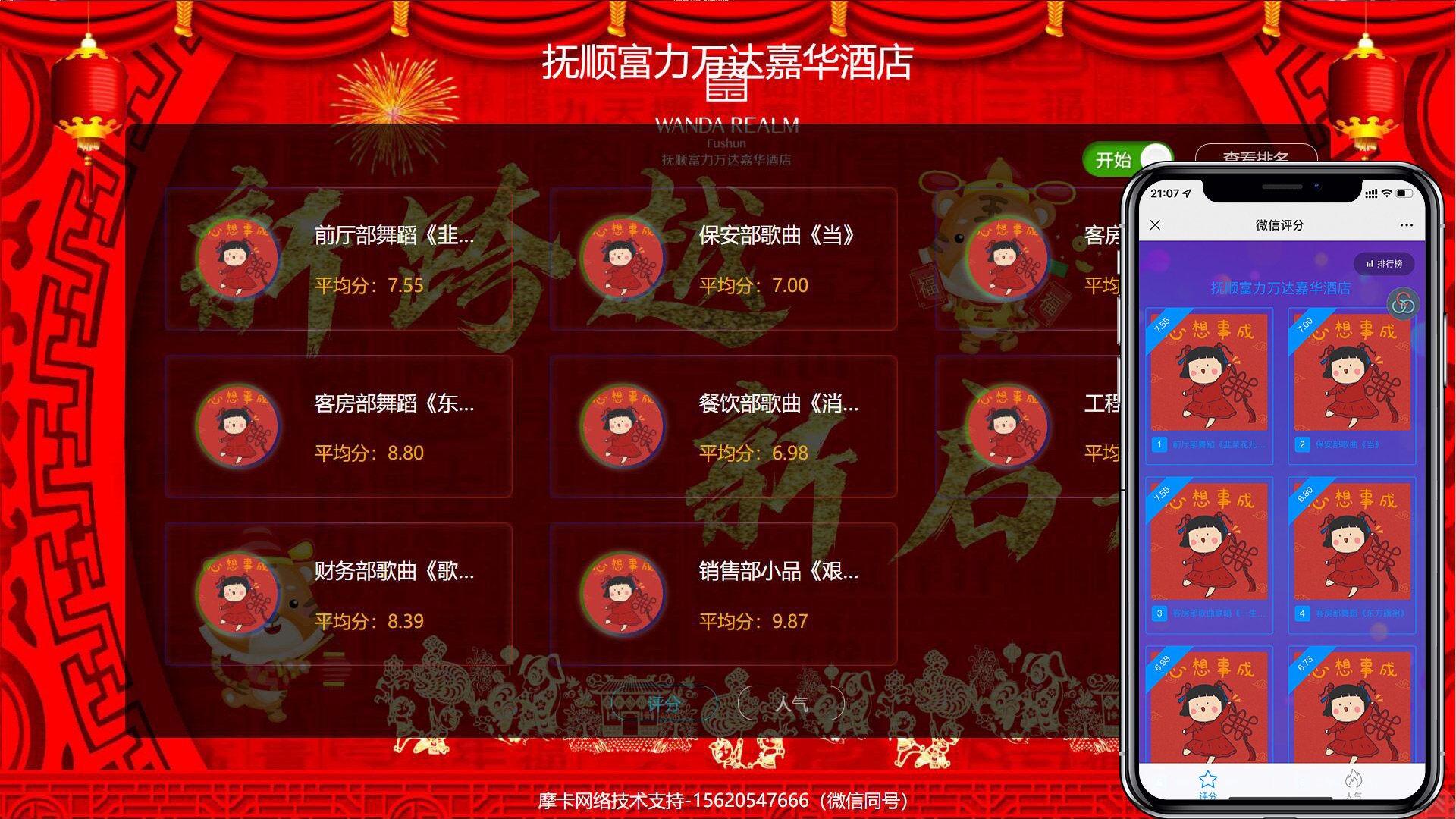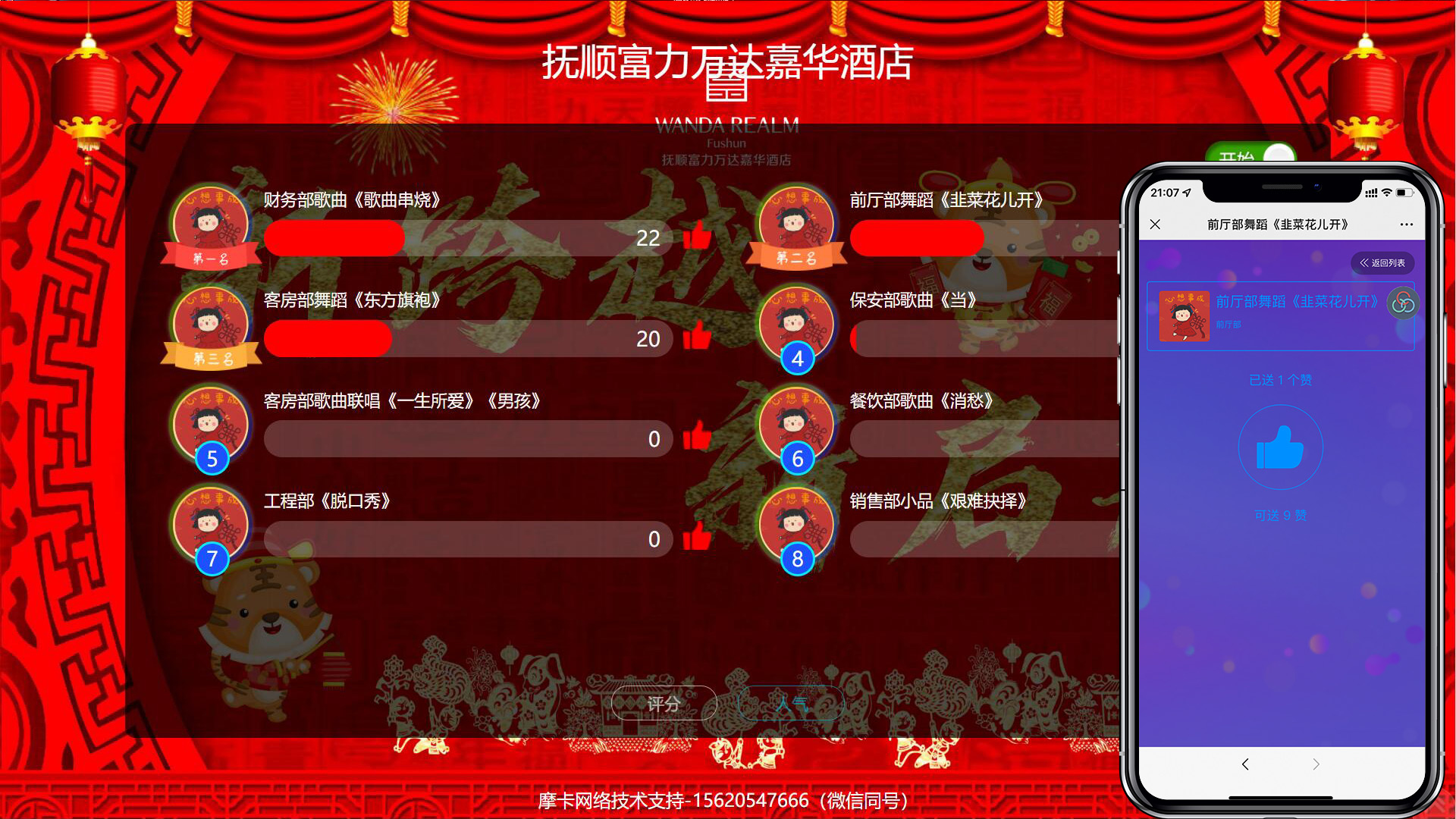 8、支持现场大众扫码打分,后台可以设置大众评分的占比,大屏幕上总的分数也会显示出专业评委和大众评委的占比。